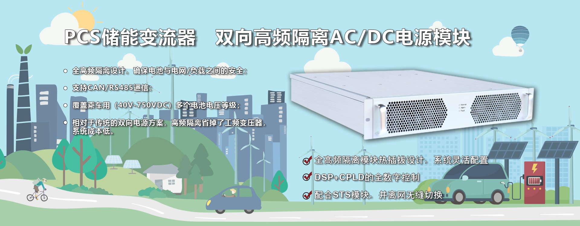 專為中小型工商業(yè)儲能系統(tǒng)量身打造的模塊化變流器產(chǎn)品,支持并網(wǎng)、離網(wǎng)運行。該模塊支持雙向能量流動、超寬范圍電池電壓,可與不同類型電池搭配使用,滿足不同應(yīng)用場景的需求